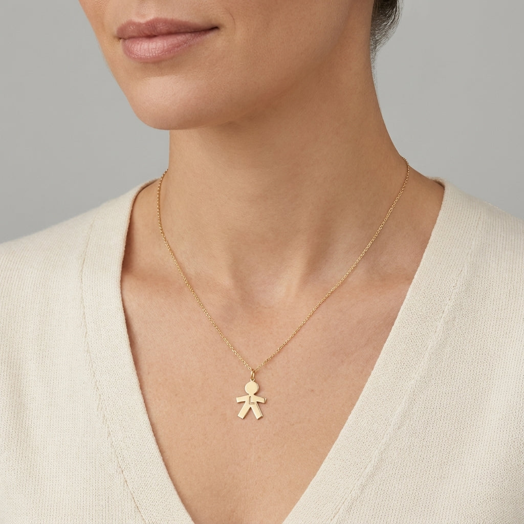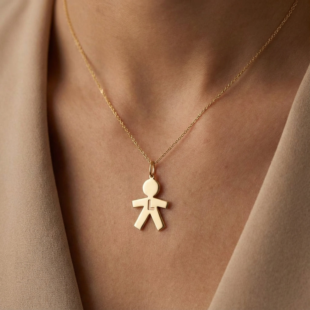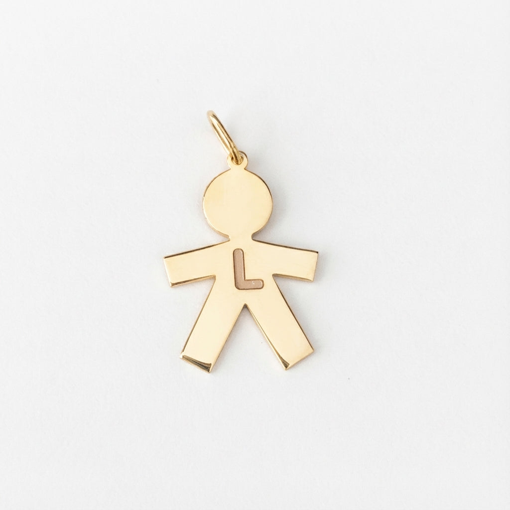 Meet your new everyday signature, the Boy Charm in Gold 14Kt. Designed for adults who love minimalist luxury, timeless fine jewelry, and modern styles, these gold charms add an instant glow to any look. Their boy silhouette design with an initial 'L' sits beautifully on the neck or wrist, making them the perfect piece for personalizing a necklace, celebrating a loved one, or simply adding a meaningful touch to your jewelry collection.