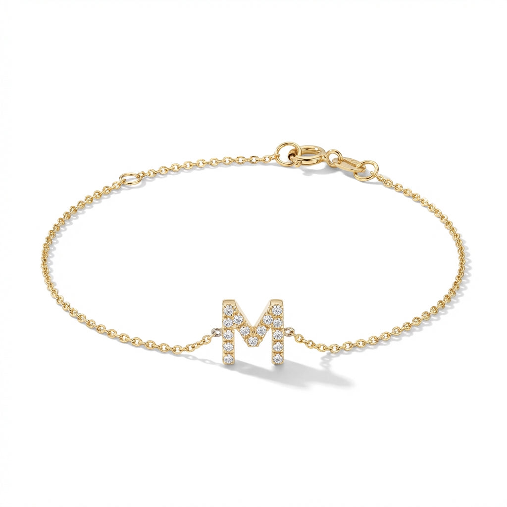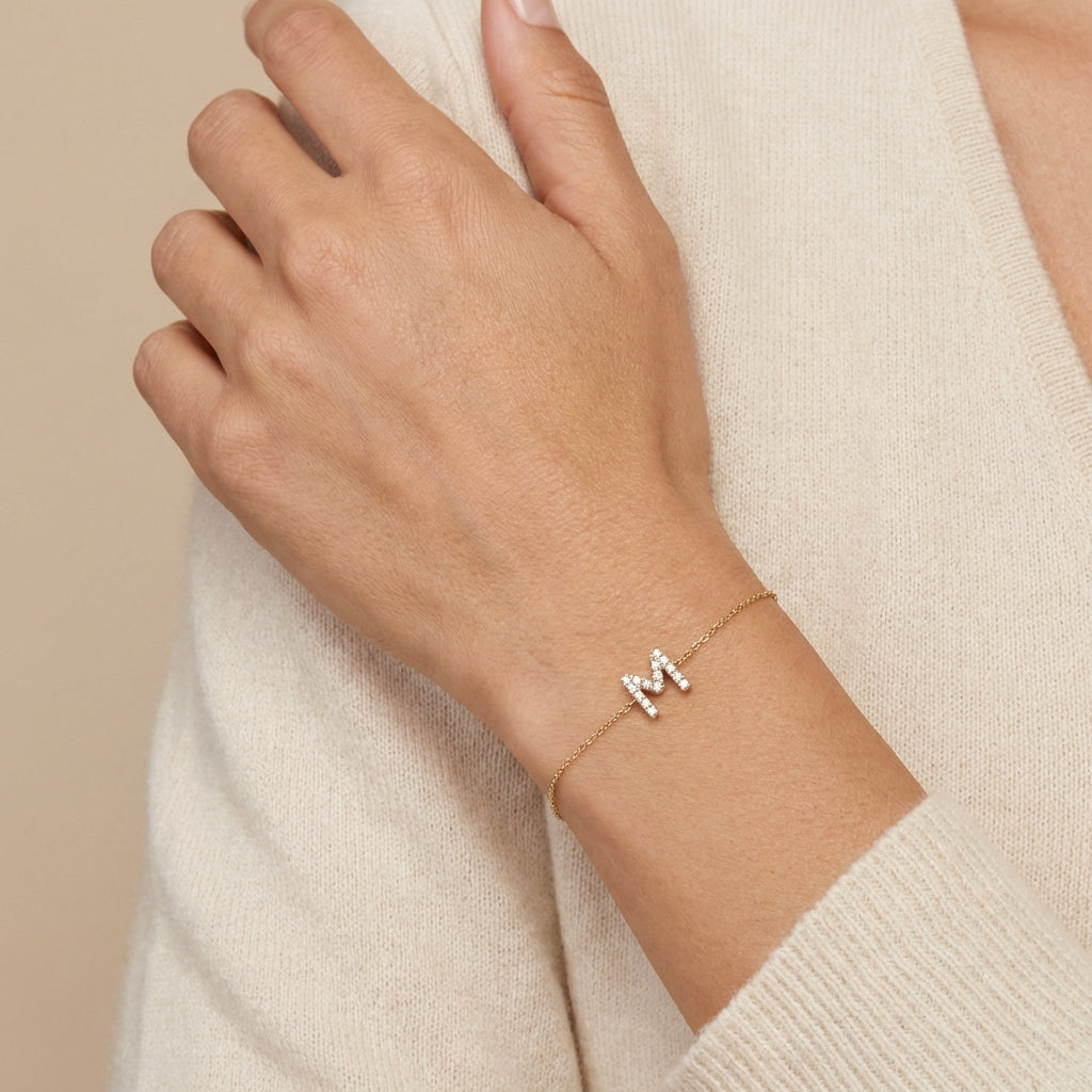 Meet your new everyday signature, the Pave Single Initial Bracelet in Gold 14Kt. Designed for adults who love minimalist luxury, timeless fine jewelry, and modern styles, these bracelets add an instant glow to any look. Their pavé initial 'M' sits beautifully on the wrist, making them the perfect piece for personal expression and daily elegance.