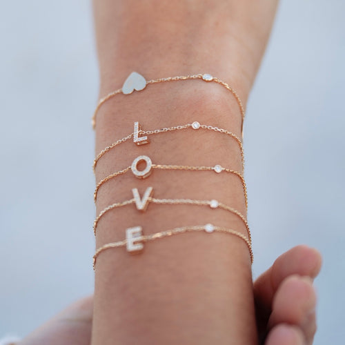 Pave Initial Bracelet with side Diamond Bezels in Gold 14Kt