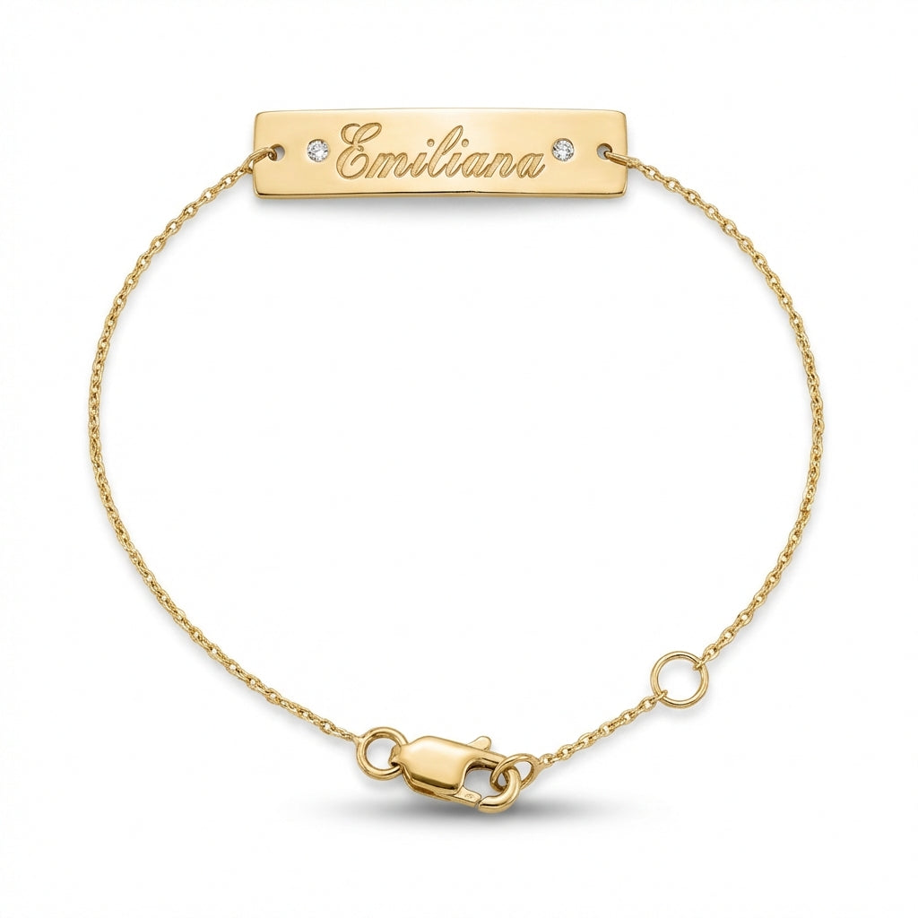 Name Bar Bracelet with side Zircons in Gold 14Kt