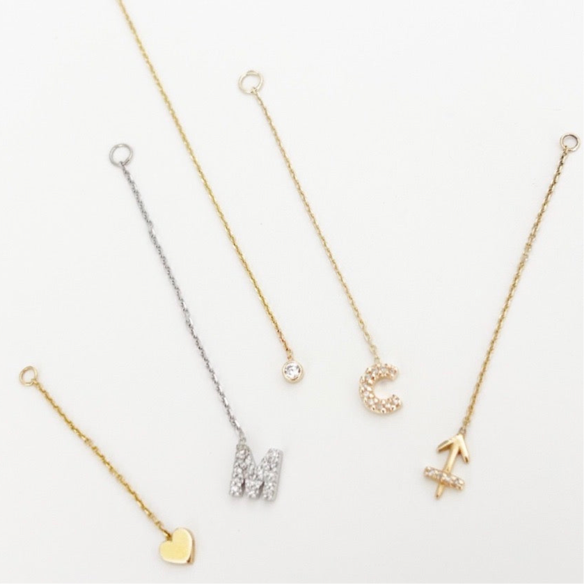 Meet your new everyday signature, the Earring Enhancer with Mini Pave Diamond Initial in Gold 14Kt. Designed for adults who love minimalist luxury, timeless fine jewelry, and modern styles, these delicate earring enhancers add an instant glow to any look. Their mini pave diamond initial charm sits beautifully on any earring, making them the perfect piece for adding a personal touch to your favorite earrings.