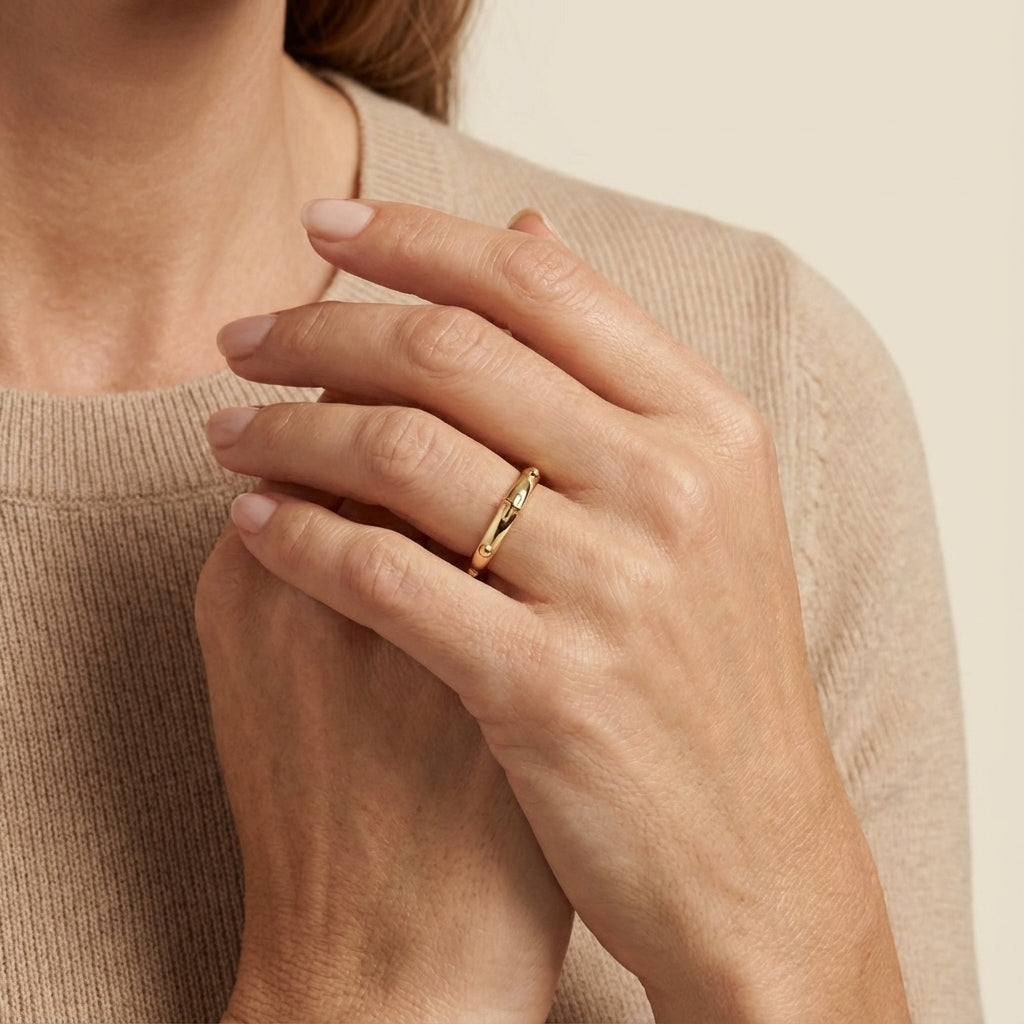 Handcrafted in premium 14Kt Solid Yellow Gold, this ring is hypoallergenic, lightweight, and gentle on sensitive skin, offering all-day comfort with long-lasting shine. Ideal for wearing on any finger, its minimal yet elevated silhouette creates the perfect blend of subtle and statement. The ultimate essential for lovers of dainty jewelry, minimal aesthetics, and everyday luxury.
