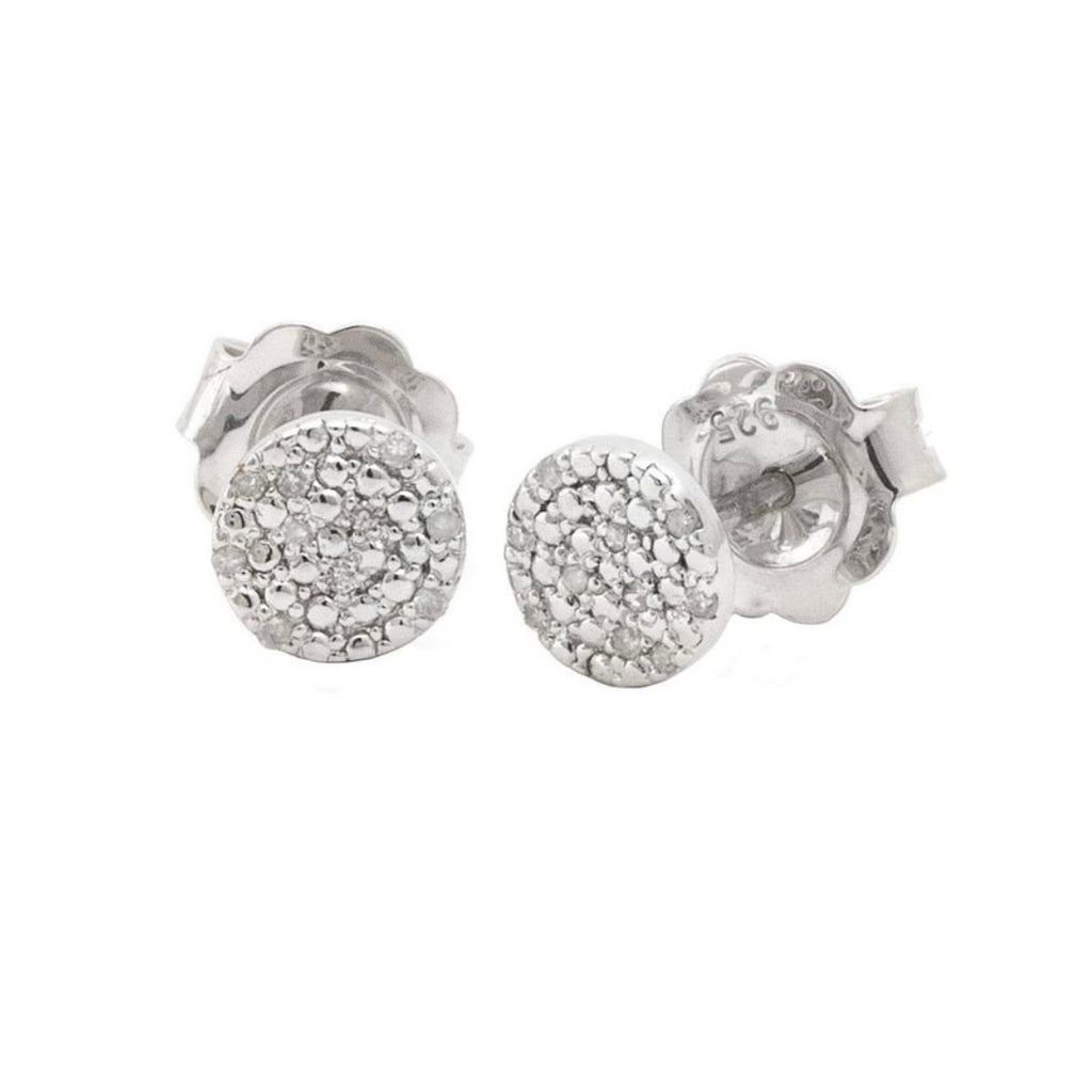 Sterling Silver Micro Pave Diamond Round Stud Earrings